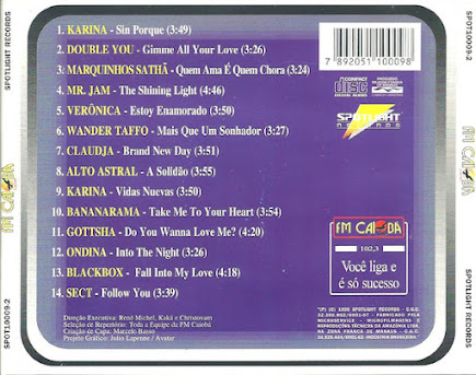 Nesse CD tem duas músicas da Karina (Sin porque e a clássica vidas nuevas). Tem Double You com Gimme All Your Love, essa eu não conhecia, mas gostei só de ouvir. Tem também o grande sucesso de Mr. Jam - The Shining Light. Essa música me traz boas lembranças daquele ano. Tem também um cover de Estoy Enamorado cantado por Verônica. Outro grande destaque dessa coletânea é Claudja - Brand New Day. Para mim, uma das melhores desse CD. Tem também Bananarama - Take Me To Your Heart, que é uma faixa bem legal. Outra faixa muito boa é Gottsha - Do You Wanna Love Me, que usa a mesma batida de The Sign do Ace of Base. Essa música da Gottsha eu adoro. Ondina - Into The Night é outro clássico desse CD. É a cara de 96. Blackbox - Fall Into My Love é outro hit bem bacana desse CD. Sect - Follow You em sua segunda versão fecha esse CD. Agora vamos para as faixas nacionais: Tem dois pagodes, Marquinhos Sathã - Quem Ama É Quem Chora e o outro é um cover de La Soledad (Alto Astral - A Solidão). Essa é praticamente a tradução para o português com algumas adaptações. Apesar de eu não gostar de pagode, gostei muito dessa versão em português para essa música. A outra faixa é um rock, Wander Taffo - Mais Que Um Sonhador. Gostei desse CD, tá bem variado e legal.